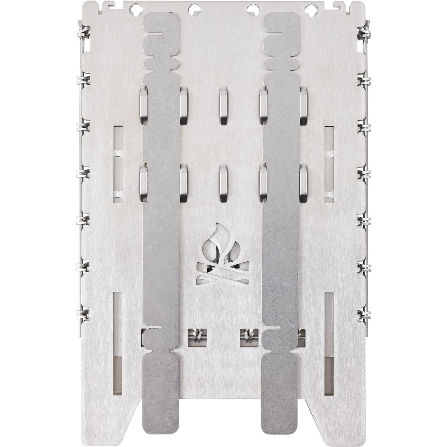 Der Bushbox XL in Titan-Ausführung von bushcraft essentials ist ein außerordentlich effizienter portabler Falt-Hobo-Kocher zum Grillen, Kochen, Wärmen. Zusammengefaltet nur ca. 1 cm dick. Perfekt für längere Outdoor-Trips, Camping, Trekking, Bushcraft, Biker, Expeditionen und und und… Unabhängig, vielfältig und einfach zu benutzen. Den Brennstoff gibt es kostenlos überall in der Natur – Zweige, Äste, Laub, Tierdung. Halteposition für Trangia Kocher. Zusammengeklappt ist dieser geniale Hobo-Ofen nur wenig dicker als 1 cm und lässt sich nahezu überall unterbringen. Der Bushbox XL Titanium wird an den Scharnieren einfach aufgeklappt und ist sofort einsatzbereit (er lässt sich auch mit Handschuhen oder klammen Händen problemlos aufbauen, was bereits auf Expeditionen unter Beweis gestellt wurde). Der Bushbox XL Titanium arbeitet nach dem Kamin-Prinzip: Luft strömt von unten in den Kocher, bringt sogar noch feuchtes Material zum Brennen und erzeugt starke Hitze, was weiter dadurch unterstützt wird, dass die Hitze im Gegensatz zu einer offenen Flamme kaum nach den Seiten abstrahlen kann und dadurch vorwiegend nach oben gelenkt wird. Der Bushbox XL Titanium ist ein Effizienzwunder. Schon mit wenigen kleinen Zweigen lässt sich Wasser in unter 4 Minuten zum Kochen bringen, Fleisch grillen, Essen zubereiten – und vieles mehr. Als Brennstoff kann neben praktisch jedem natürlichen bzw. festen Brennstoff wie Holz, Rinde, Holzkohle (sogar trockner Tierdung) auch ein Spiritusbrenner, Esbit-Tabletten oder ein Gel-Kocher verwendet werden. Durch zwei mitgelieferte Stäbe (aus Edelstahl) kann eine externe Wärmequelle (z.B. Trangia) auf jeder beliebigen Höhe in der Bushbox XL plaziert werden. Diese Stäbe lassen sich auch auf der Oberseite des Kochers einlegen, so dass auch kleine Gefäße erhitzt werden können. Die mitgelieferten, äußerst variabel einsetzbaren Topfauflagen können alternativ verwendet werden als Höhenregulierung beim Einsatz anderer Wärmequellen, Haltestäbe zum Transport oder Versetzen des heißen Kochers und Halterung für den Trangia-Brenner.