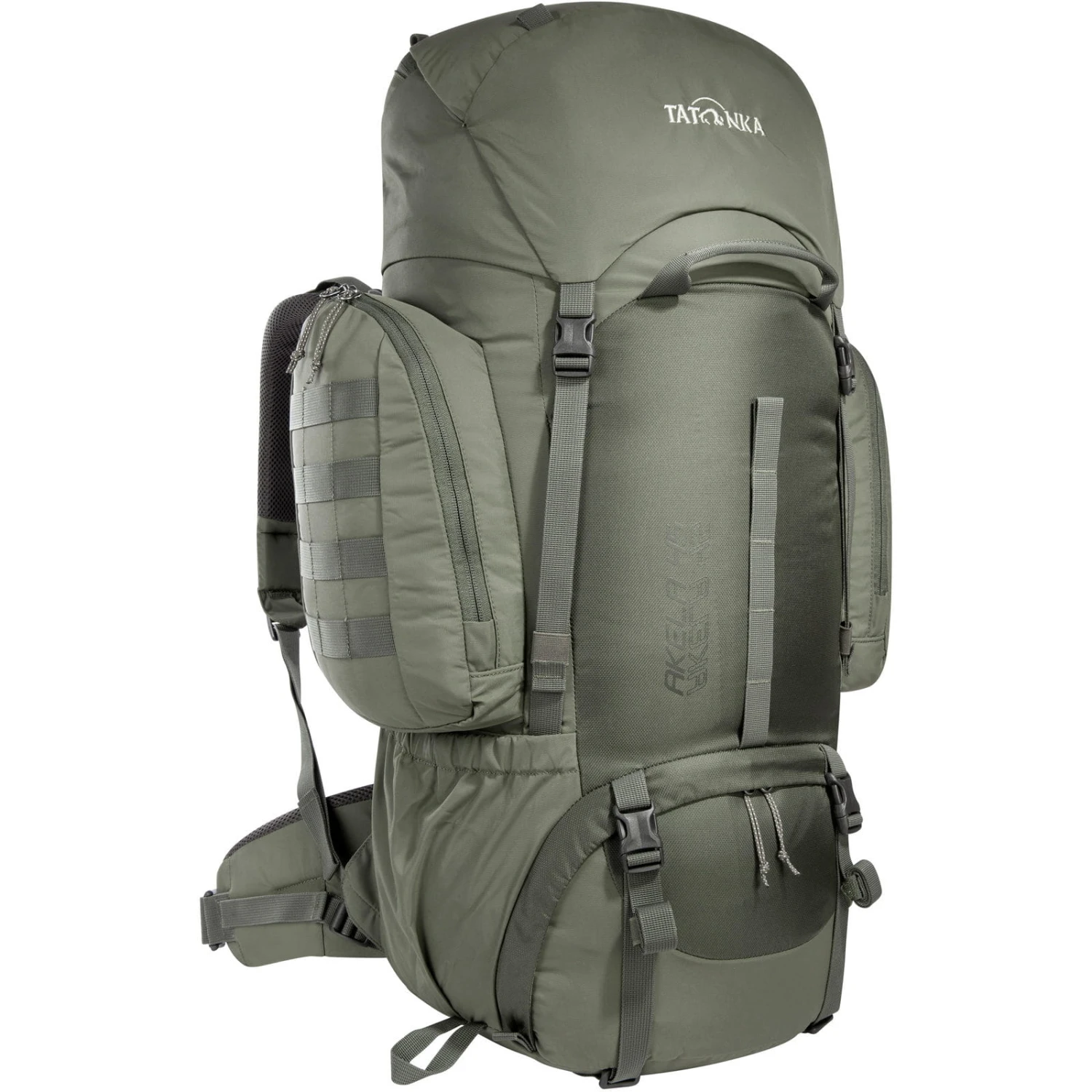 Der Akela 45 von Tatonka ist ein Trekkingrucksack für Jugendliche und Trekking-Einsteiger und eignet sich hervorragend für Trekking- und Pfadfindertouren oder als Reiserucksack. Sein angenehm flexibles V Comfort Vario-Tragesystem sorgt für eine effiziente Lastübertragung im Hüftbereich und damit für rückenschonendes Tragen. Hüftgurt, komfortabel gepolsterte Schulterträger und Lastkontrollriemen können individuell eingestellt werden. Das V Comfort Vario-Tragesystem lässt sich zudem an unterschiedliche Rückenlängen anpassen und kann so in gewissem Maße „mitwachsen“. Der Akela 45 verfügt über ein geräumiges Hauptfach und ein separates, von außen zugängliches Bodenfach. Das Bodenfach dient traditionell der Unterbringung des Schlafsacks oder schmutziger Kleidung. Der Tourenrucksack ist unter anderem mit einer Trinksystemvorbereitung, einer Stockhalterung und einem großen Deckelfach ausgestattet. Zusätzlich verfügt der Trekking-Rucksack seitlich über zwei elastische Einschubfächer und zwei große, aufgesetzte Seitentaschen mit Reißverschluss, hinter denen ein offener Einschubkanal z.B. für Zeltgestänge genutzt werden kann. Materialschlaufen an Deckel, Front und Seitentaschen sowie die umlaufende Bodenkompression bieten weitere Befestigungsmöglichkeiten und runden den Teenager-Trekkingrucksack ab.